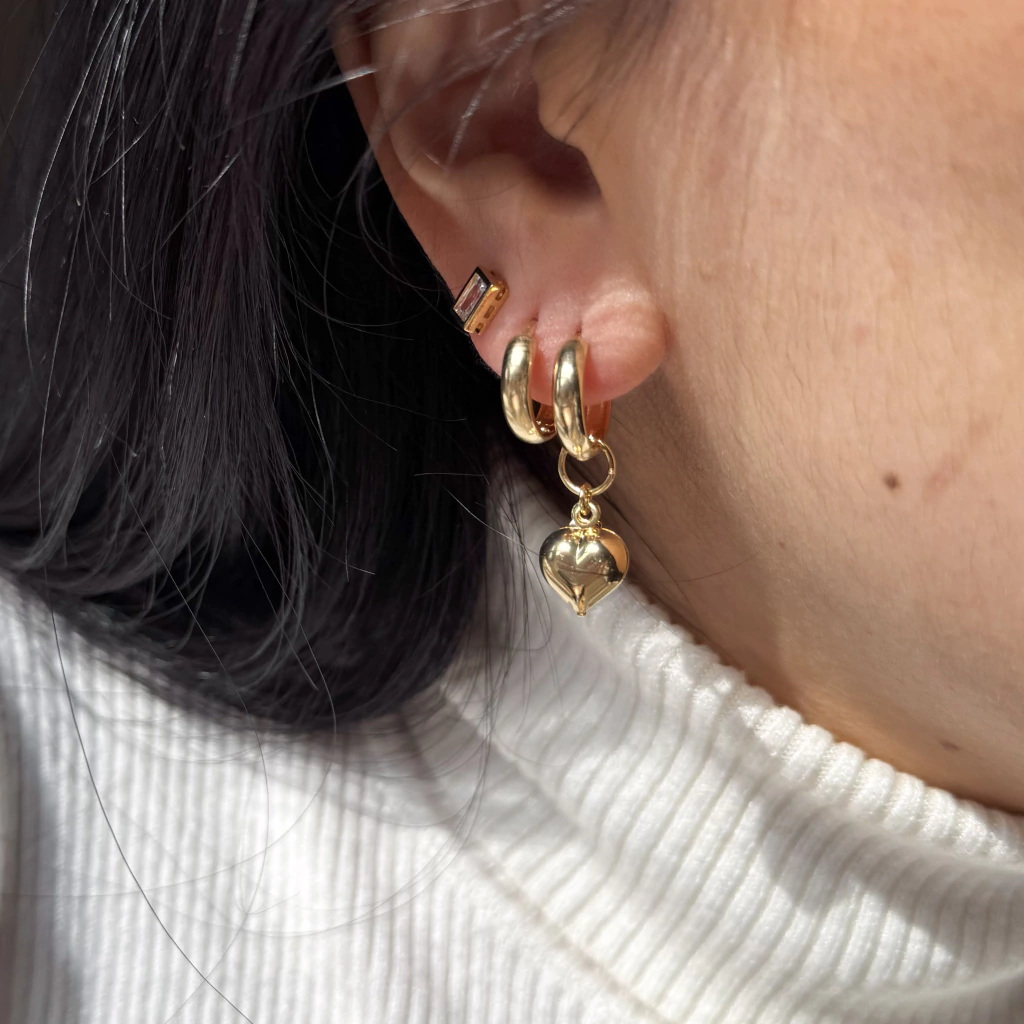 Versátil, moderno e cheio de significado: o Brinco argolinha Love é a peça desenvolvida com banho resistente e acabamento delicado, ela une a elegância da argola clássica ao símbolo de afeto, romantismo e conexão do pingente de coração.