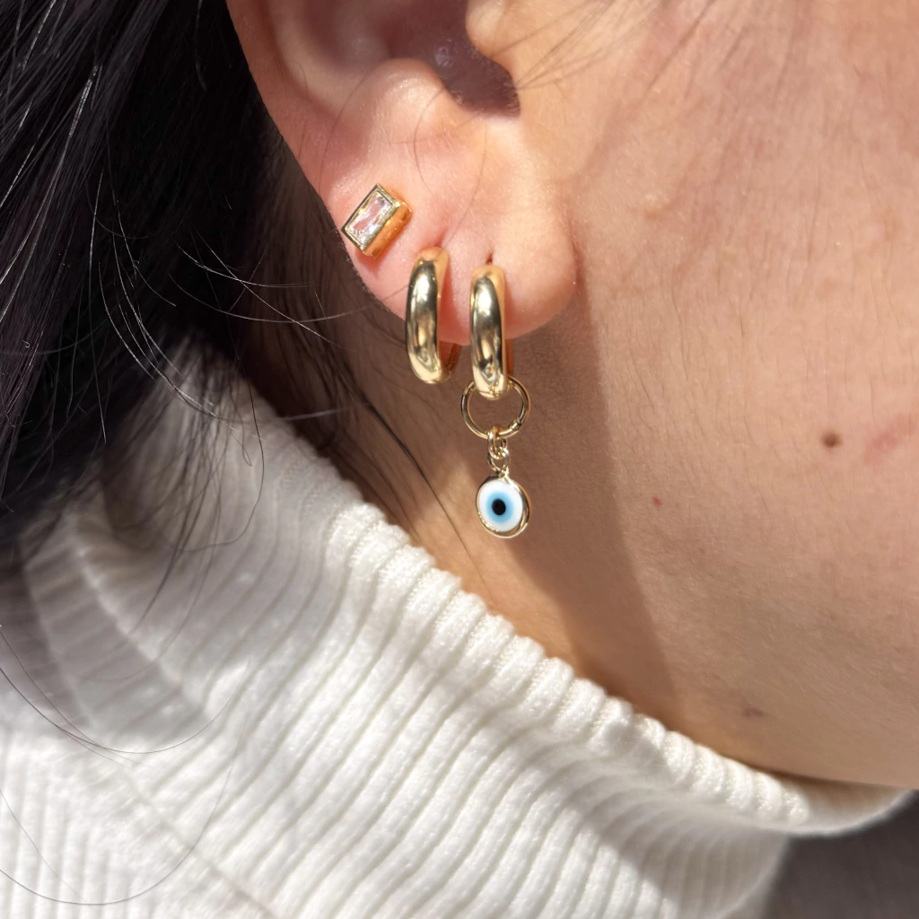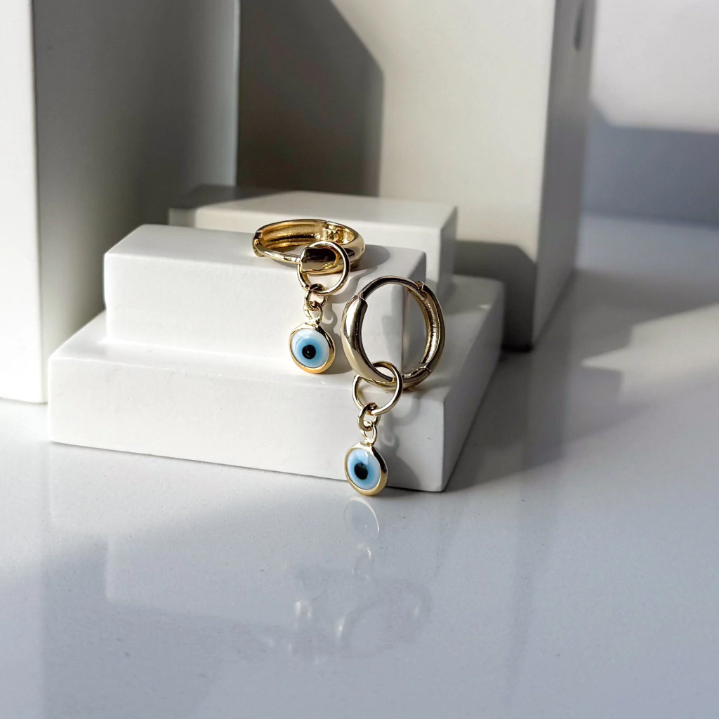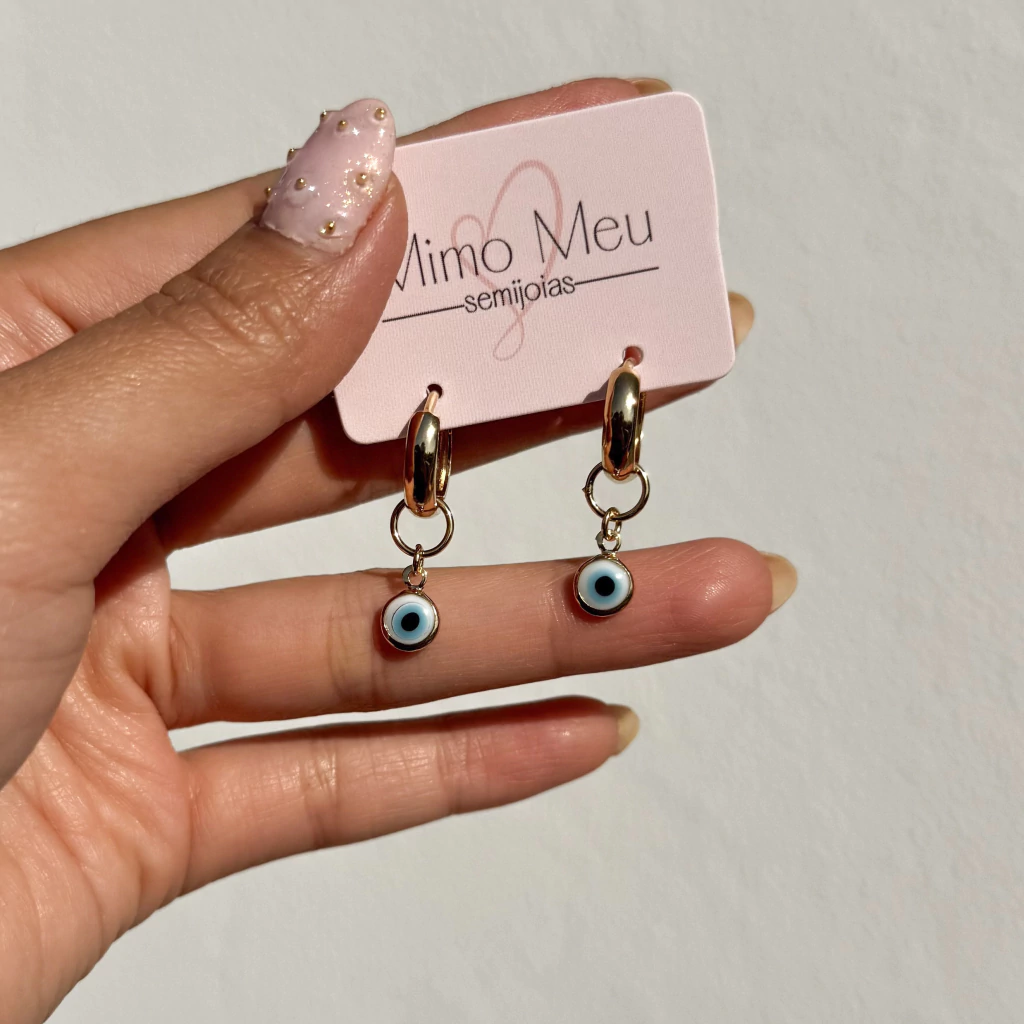 O Brinco argolinha Olyos é uma joia delicada, moderna e cheia de significado. Seu design combina a elegância do banho de ouro com a simbologia do olho grego, conhecido por atrair boas energias e afastar o mau-olhado.