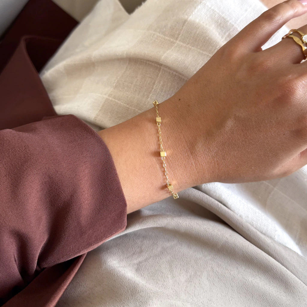 A Pulseira Mini Cubinhos é um acessório delicado e moderno, ideal para quem busca sofisticação e versatilidade em uma única peça. Com um design minimalista e elegante, ela é composta por pequenos cubinhos alinhados de forma harmoniosa, proporcionando um brilho sutil e refinado ao visual.